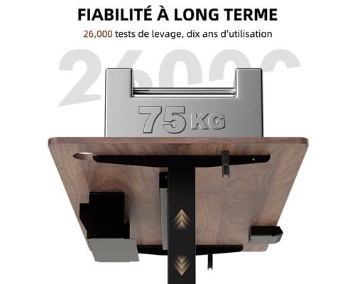 Conçu pour améliorer le confort et la productivité, ce bureau électrique intelligent offre un fonctionnement ultra-silencieux (< 48 dB) et une vitesse de réglage rapide jusqu’à 25 mm/s. Sa hauteur ajustable de 70 à 119 cm permet de passer facilement de la position assise à debout, s’adaptant à tous les profils d’utilisateurs.