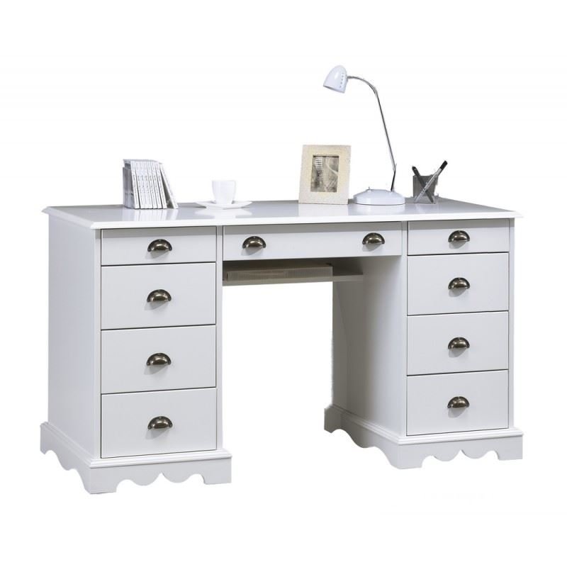 Bureau de ministre blanc à 9 tiroirs, style anglais.