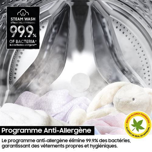 Deux programmes dédiés utilisent la vapeur pour éliminer 99,9 % des bactéries : Feuilles et Anti-allergènes.