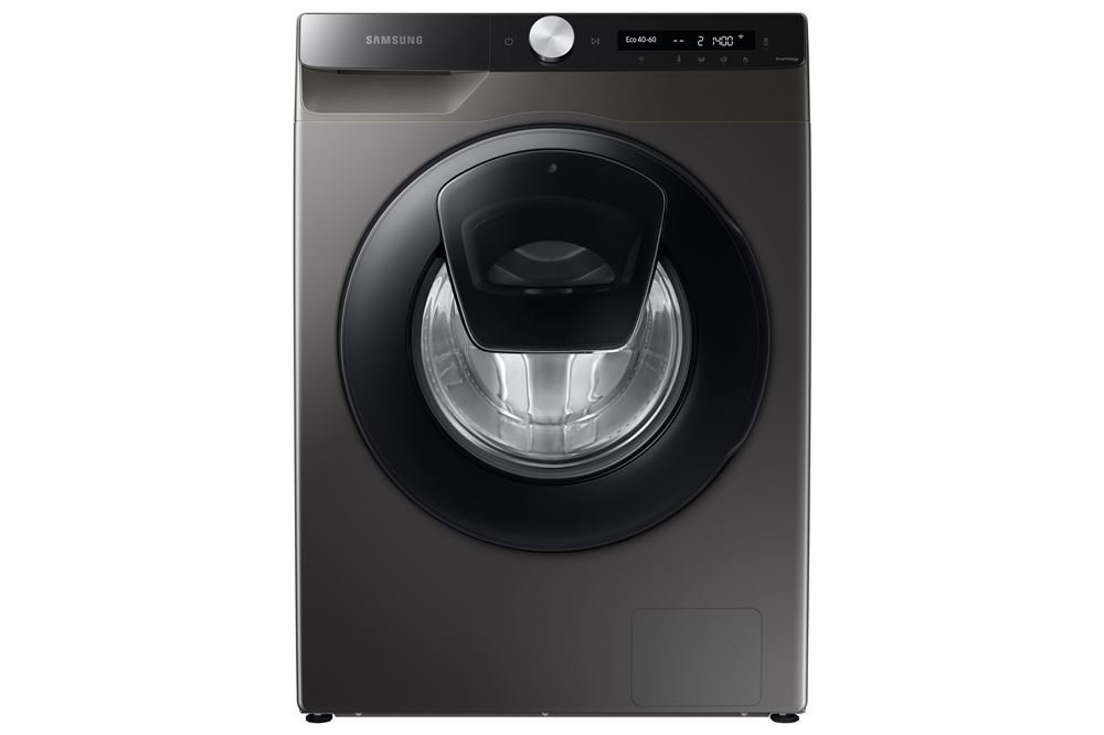 Le lave-linge frontal Samsung WW80T554DAX, gris métallisé avec porte noire, offre une capacité de lavage de 8 kg, 19 programmes, dont un programme Express de 15 minutes et 2 programmes vapeur : draps et anti-allergènes.