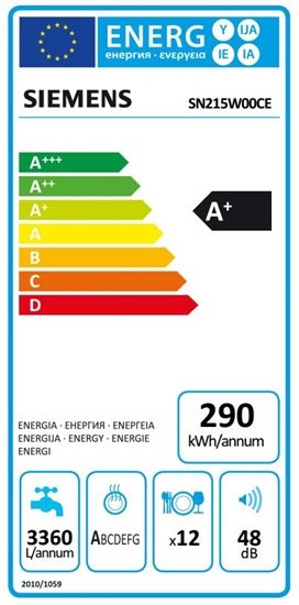 Siemens SN215W00CE – Lave-vaisselle 60 cm Classe A+ 12 couverts Blanc